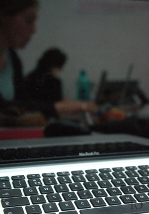 Academiebeelden in het beeldscherm van de macbook, een veelgebruikte computer op de academie.